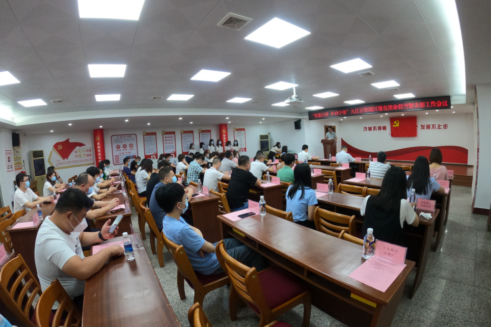 202267日(星期二)上午8:45,九江公资园区于九江公资大楼三楼大会议室召开了“党建引领,并肩守望”强化使命担当暨表彰工作会议,九江镇副镇长黄健同志作园区防疫工作总结,由镇党委委员王若辉同志、镇副镇长黄健同志分批对参与公资园区大型核酸检测及防疫工作的党支部、企业或个人进行表彰